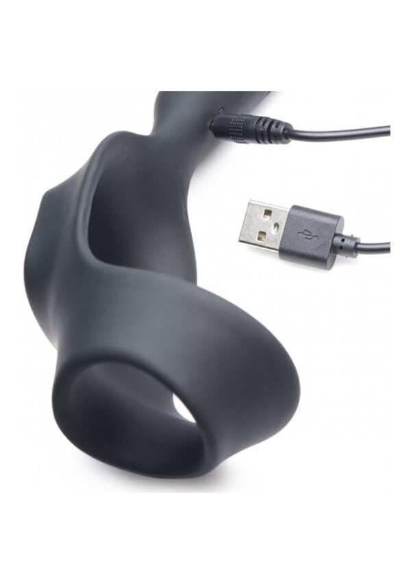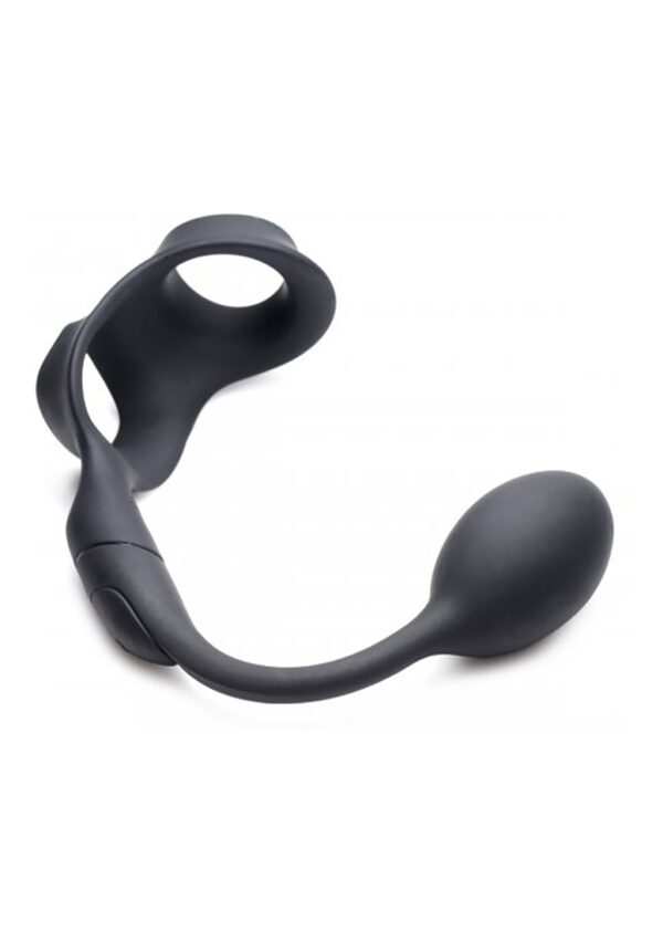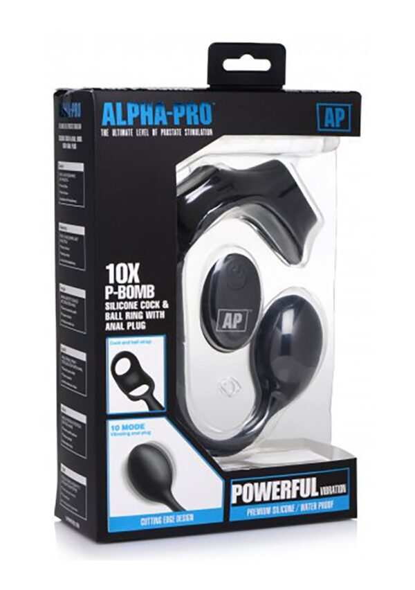 Cock and Ball Ring + Plug with 10 SpeedsErvaar het ultieme niveau van prostaatstimulatie met dit gecombineerde mannelijke plezierspeeltje! Beperk je pik en ballen met de elastische siliconen ring om je erectiekwaliteit te verbeteren en geniet van de zoemende vulling van de bijgevoegde anaalplug. Het cutting edge design stimuleert zowel je binnenkant als je buitenkant met autoriteit – perfect voor gebruik alleen of met je partner!Verwen je kont met 3 intensiteiten en 7 vibratiepatronen! Blader door elke functie met de ingebouwde aanuit-knop of met het gemak van de meegeleverde draadloze controller – zoem je prostaat en geniet in je eentje van je stevige erectie, of geef de kracht over aan je partner voor kinky onverwacht gezoem tijdens de geslachtsgemeenschap! Oplaadbaar via de meegeleverde USB-oplaadkabel. De P-Bomb is gemaakt van luxe, eersteklas siliconen – de perfecte mix van flexibiliteit en zachtheid van top tot teen voor een hoogwaardig gevoel. Fluweelzacht, ftalaatvrij, latexvrij en lichaamsveilig voor zorgeloos spelen! Alleen compatibel met glijmiddelen op waterbasis. De vibrerende anaalplug heeft een comfortabel gewicht om extra pit toe te voegen aan je achterdeurvulling. Ontworpen met IPX6-waterdichtheid, zodat je met vertrouwen kunt spelen! Reinig voor en na gebruik.