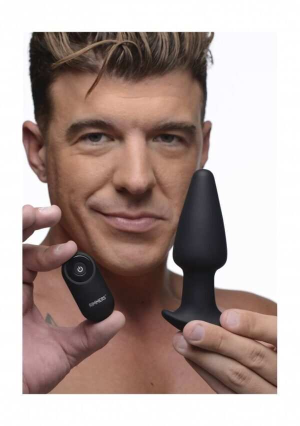 Gyro R – Curved Rimming Plug with Remote ControlJe kunt een schop niet altijd een schop noemen, vooral niet als het ook een op afstand bestuurbaar anaal hulpmiddel is dat trillingen, ronddraaien en een wervelend gevoel geeft! Beter dan je gemiddelde buttplug, masseert de Gyro-R de opening naar je gaatje met roterende kralen langs de steel, wat een gevoel geeft dat lijkt op een rimjob! Speel met 4 snelheden en 6 functies van gelijktijdige vibratie en wervelende tevredenheid rond je sluitspier. Ondertussen zal de plug subtiel ronddraaien in je gaatje voor een extra stimulatie. Een optionele afstandsbediening kan het spelen in je eentje makkelijker maken, maar kan ook draadloos plezier bieden met een partner. Een oplichtende knop op de draadloze controller maakt het gemakkelijk om in het donker door instellingen te bladeren. Dit opwindende gereedschap is gemaakt van eersteklas siliconen en is niet-poreus, ftalaatvrij en waterdicht. Ontsmet na gebruik met milde zeep of toycleaner.