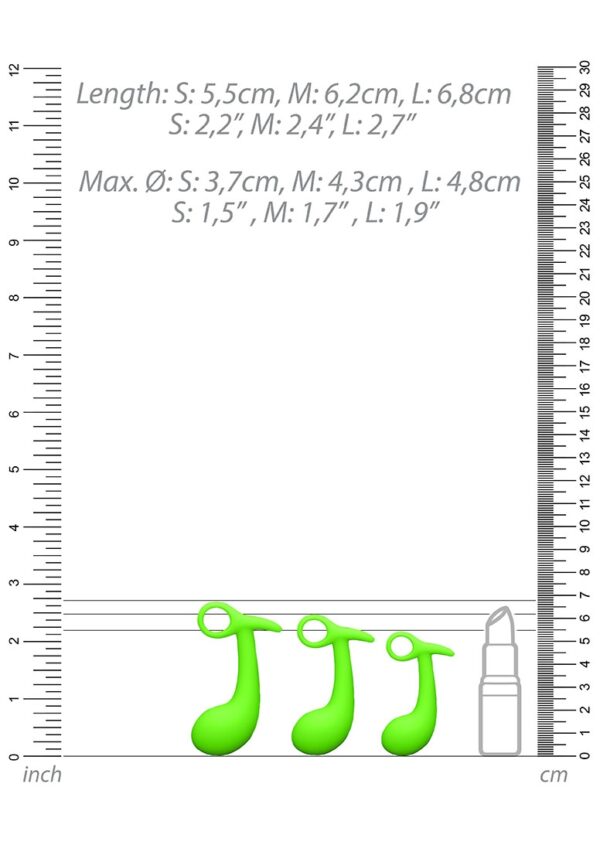 Prostate Kit Set of 3 – Glow in the DarkOuch! Glow in the Dark, de toekomst van bondage is hier. Het design heeft het autentiek bondage uiterlijk, maar brengt licht in het duister door zijn fluoresecrende groene details waardoor alles een feest wordt. Ben je op zoek naar orgastische anale actie? Deze glow in the dark buttplug zal je niet teleurstellen. Ontspan en geniet van de meest bevredigende achterdeurgenot van je leven, of het nu alleen is of met je maatje. Gebruik glijmiddel en je bent klaar om te gaan! Ouch! Glow-In-The-Dark producten moeten worden geactiveerd met het zonlicht voordat je er in het donker van kunt genieten.